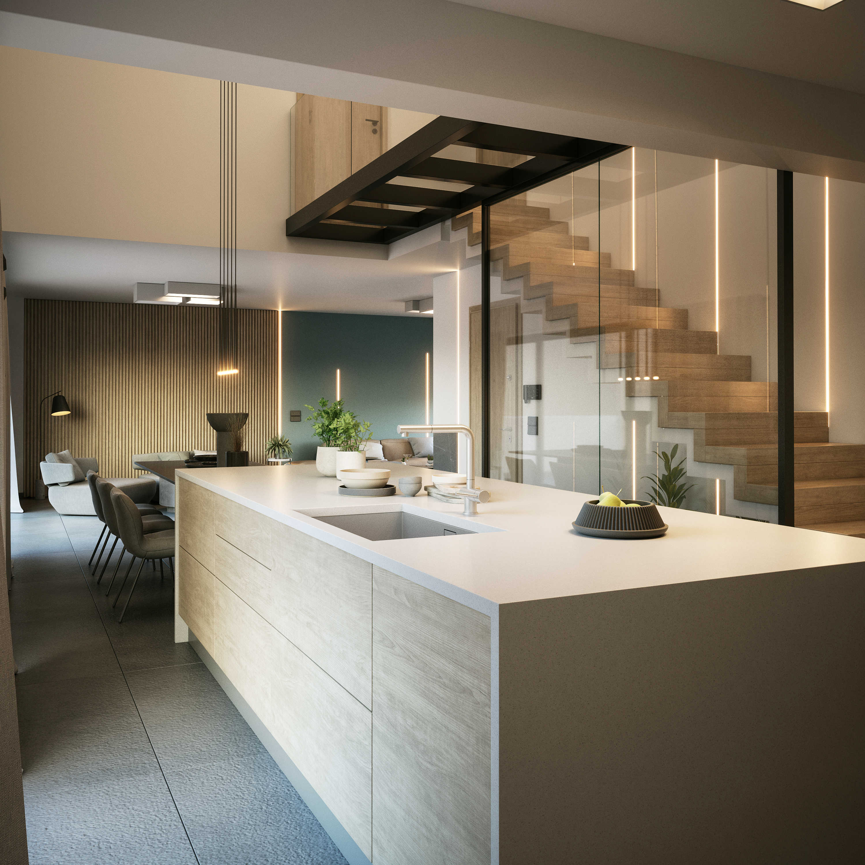 Πολυτελής μεζονέτα του νέου αυτού μοντέρνου κτιρίου που προσφέρει εκπληκτική θέα πάνω από την Αθήνα και τον Υμηττό.
